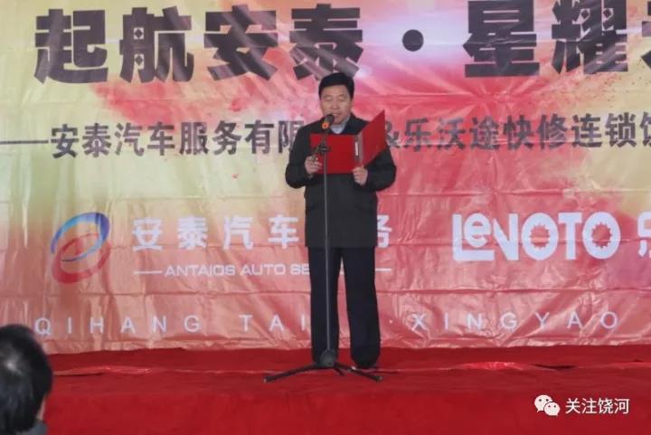 县政协副主席何玉才在致辞中表示,安泰汽车交易中心和乐沃途快修连锁店落户我县,是我县招商引资工作的重要成果,也是我县汽车服务发展行业的一个重要里程碑。随着我县经济的快速发展,百姓在选车用车的需求上更加追求“安心、放心和舒心”,同时希望安泰汽车服务中心按照县委、县政府的工作思路,以满足群众需求为己任,以实现百姓生活幸福感为目的,不断提高经营服务水平,率先成为我县汽车服务行业的领头羊。